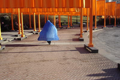 This comical image is my friend Roz (though it could easily be her husband Harris for all I know) wearing an Afghan burka while walking through Central Park. My friend Roz is putting the burka on Ebay in a fundraising auction to for AïNA (a non-profit org that promotes grass roots media education in Afghanistan). Roz has just returned from a 3 month trip in Afghanistan, bringing this authentic burka with her.